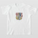Öga-takande t-shirt-design har frasen "Grins for Guld" i en vibrerande multifärgad övertoning. Varje brev övergår sömlöst till nästa och skapar ett dynamiskt och glatt utseende.