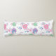 En kroppskudda med japansk design av pappra origami-kranar och blommor i rosa, lila, grönt och blått.