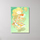 Canvas med två karp koi i vatten lilja damm illustration. Gröna, gula, orange och gyllene färger.