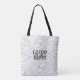 Den här karpediemofferten till väskan har en fet originalutformning av abstrakten i grått och vitt i en modern chic stil vid all utskrift. Upphovsrätt till originalkonstverk Ann Powell alla höger reserverade.