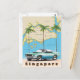 Illustrerad karta i Singapore i en vacker vintage stil poster med en klassisk superbil.