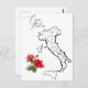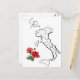 ITALIEN och ITALIENSK TEMA-design med svart på vit KARTA av ITALIEN och liten bukett av starkt RÖD ROS med GRÖNT LÖV.