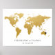 Guldvärldskarta och anpassade namn eller annan text och hjärtmarkör är vacker som konstverk för ett par med wanderlust eller använd som alternativ gästbok för bröllop med resatema, evenemang på destination, och bar mitzvah- och bat mitzvah-firanden med resatema och baby- eller brudshower.