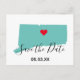 Anpassningsbar färg Connecticut-lägesformen karta med en sparad datumutformning. Anpassa den lätta tealgrafiken så att den stämmer överens med paletten bröllop färg. Berätta för dina vänner och din familj var bröllop ligger med en hjärttextsymbol som du kan flytta. Flytta texten framtill så att den passar ditt mål. Både det moderna och elegant kalligrafteckensnittet stilar är anpassade.