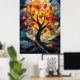 Detta förtrollande konstverk inspirerat av glasmålning har ett hjärtformat träd som lyser med livfulla röda, orange och gyllene blad. Mot en lugn bakgrund av mjuka blå toner och jordnära färger symboliserar detta konstverk kärlek, tillväxt och gemenskap. Perfekt för naturälskare, romantiker och konstelskare.