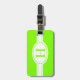Ett bagagemärke i den mycket synliga färg-chartreuse med ditt monogram på en vit ovalsköld med ett band. Lägg aldrig fullt synligt på en bagageetikett. Det är därför du bara hittar ditt namn, mobilt nummer och e-post adress på baksidan av ställe.