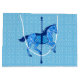 Digitalt grafiskt för blandat massmedia av en klassikerkarusellhäst, i blandade mönster, mot en arabesque belagd med tegel bakgrund - mörk koboltblått, skuggar av himmelblått och vit