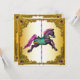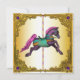 Vacker målad karusellhäst guldfödelsedagsfest och evenemangsinbjudan mall. Anpassa fram- och baksida för ditt evenemang.