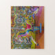 Ett vackert foto av färglösa karusellhästar tryckt på ett pussel.