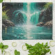 En häftig och livfull målning av ett vattenfall som kantas in i ett fritt bassäng. Vatten återges i träffande vita och briljanta tealskuggor, som kontrasterar med mörken, taggigt sten som utgör klipporna på båda sidor. Lush, grönt löv och känsliga viner med gult blommar hängs från de bergiga ledarna, vilket ökar känslan av en gömt, naturlig fristad. Vatten vid fallets grund är en reflekterande turkos med krämer och en bra dimma som fångas i luft. Stil är dynamiskt och uttrycksfullt, med fokus på att fånga vatten rörelse och ljus.