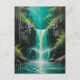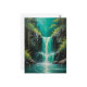 En häftig och livfull målning av ett vattenfall som kantas in i ett fritt bassäng. Vatten återges i träffande vita och briljanta tealskuggor, som kontrasterar med mörken, taggigt sten som utgör klipporna på båda sidor. Lush, grönt löv och känsliga viner med gult blommar hängs från de bergiga ledarna, vilket ökar känslan av en gömt, naturlig fristad. Vatten vid fallets grund är en reflekterande turkos med krämer och en bra dimma som fångas i luft. Stil är dynamiskt och uttrycksfullt, med fokus på att fånga vatten rörelse och ljus.