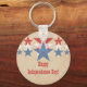 Nyckelkedjan roligt och snyggt Red, White and Blue Star Cascade Independence day med en faux texturerad papper bakgrund och fallande rader med röda, vita och blå stjärnor. Den här unika nyckelkedjan är ett perfekt sätt att visa ditt amerikanska pride den 4 juli! Enkel att anpassa, lägg helt enkelt till egen text på det utrymme som finns. Den här utformningen är också underbar för minnesdagen!