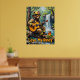 Den här fina målningen visar en björn klädd som brandman, med solglasögon och hjälm, som strummar en akustisk gitarr medan den genomsöktes på en mossbar logg nära ett vibrerande vattenfall. En burk av guldhonung placeras bredvid den. Bakgrunden är en lush-skog med solljus på löven. De tjocka, texturerade penseldragen förstärker scenens visuella och söta karaktär, med "Kärlek My Honung" på framträdande plats.
