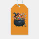 Cauldron of Giggle & Gummies Gift Märkres. En glad kaskuldronstrålar, fylld med kanaler som exploderar som konfetti, stolt sport en häxhatt. Dess broompinne lutar sig nära, väntar uppenbarligen på en ljuvad livTEff, Halloween är den glest sockerdrivna häxbilen!