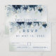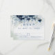 Tungblåa blommigtar och dammig+blå eucalyptus grönenery markerar bröllopsinbjudan med delikat vattenfärgstvättande teknik.
