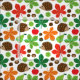 Gulligt färgrikt seamless mönster med kastanjer, kastanjebruna löv, äpplen, pears och igelkottar.