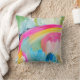 Vacker abstrakt regnbågskastkudde och husvärmegåva, designad av Jo Claire Hall från Groovy Gal Designs.