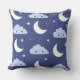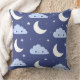 Kastkudde Marinblå Kawaii Måne Stjärnor Moln Mönst Kudde