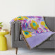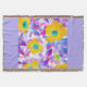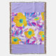 Vik dig själv i komfort och färg med denna dekorativa vävda filt med en djärv blommig design. Ljusgula blommor med turkosa centra och abstrakta lila-rosa blad ramas in av en mjuk lavendelkant och avslutas med en flerfärgad frans. Perfekt för mysiga kvällar, stilfull heminredning eller som en unik present