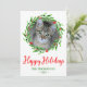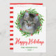 Det här vackra fotojulkortet med ett foto av din katt eller ditt barn i en fantastisk julkrans med vattenfärg, Glad helg i ett modernt penselskript, ditt efternamn och året skulle vara perfekt att skicka till dina vänner och familj. Alla kommer att få ett nytt foto av dig eller kattunge. Typsnitt är modernt och rent. På baksidan finns det en samordnande röd rand med guld stänk. Om du vill göra det här kortet till ett eget kort väljer du Anpassa den här mallen, överför ditt favoritfoto och skriv in det i ditt namn och året. Det är lätt toppen! Om bara några sekunder visas dina unika och fantastiska helgdagskort.