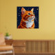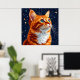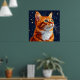 Kat Gazing vid en stjärnkryddnatt Himmel Poster