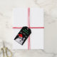 Tekigt fotografi av en grumpig katt som bär en julhatt på Juletiketter.