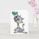 En underbar utformning av en katt sitta tittar upp på en liten fjäril som flyger precis ovanför hans näsa. Katten är grått och har rosa tunga och ser mycket lycklig med världen. Smörossen är underbar och flyger precis ovanför katten. Den här katten och en fjäril-design ser underbar ut på de här anteckningskorten