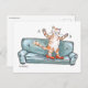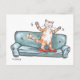 En katt lycklig dansar på soffa. Originalteckningar som gjorts av Sue Clancy.