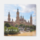 Se katedral-Basilica från Dam i Pillar och Ebro. Resa. Spanien. Aragonien. Zaragoza. Romersk katolsk kyrka. Katedral. Dam i pelaren. Baroque stil. Arkitektur. Floden Ebro.