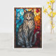 Katedralglas stil Grå Katt Kort