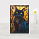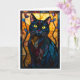 Katedralglas stil Svart Katt med Blad Kort