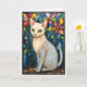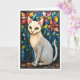 Katedralglas stil vit katt med blommor kort