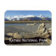 Fotografi av Mt. Steller, Kukak Volcano och Djävulen Desk från Hallo Bay i Katmai nationalpark i Alaska. Fotografi av NPS.