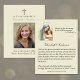 Elegant och enkelt religiösa- och begravningskort med foto och guld crucifix på framsidan och en bild av Mary som håller Baby Jesus med ett vackert bön- och manuscitat på baksidan. Alla texter och typsnitt kan ändras.
