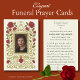 Detta katolska begravningskort hedrar på ett vackert sätt minnet av en älskad person med traditionell marian och Helig Heart-symbolik. Utformningen har ett komplicerat rullverk i guld, ett strålande marianmonogram och ett levande röd ros, vilket framkallar italiensk devotionell konst. Ett Helig Heart som flammar upp visas på en framträdande plats vid basen, som symboliserar gudomligt kärlek och barmhärtighet. Fotot från den avgående har vriden inramning i mitten, och på baksidan finns en hjärtlig katolsk bön för själens skull. Perfekt för vågor, begravningar eller masserbjudanden. Fullt anpassade med text och bild.