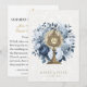 Med en vacker traditionell katolsk bild av eukaristin i en gyllene monstrans omgiven av en vacker blomsterkrans, överlagd på en vit spetsig bakgrund. En bön finns på baksidan för bruden och brudgummen. All text och typsnitt kan ändras.