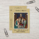 Denna design skapades från en bild av Marias förlovning med Josef i templet. Översteprästen ger sin välsignelse med den Helige Ande ovanför dem. Dina bröllopsgäster skulle älska att få en souvenir som denna! Fram- och baksidan har en gulddamask bakgrund. All text och typsnitt kan anpassas.