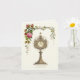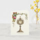 Med en specialdesignad traditionell katolsk religiös bild av den heliga monstransen med eukaristin och en rosa rosfestoon ovanför. En vacker vit liljebård accentuerar ramen.