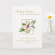 Med en vacker, specialdesignad kort för en födelsedag eller någon annan speciell tillställning med vita blommor, lavendel bär och ett förgyllt krucifix. En bön framför ett krucifix finns på vänster sida inuti kortet och en design med vit spets finns i bakgrunden.