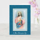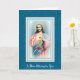 Detta är en vacker traditionell bild av Jesu heliga hjärta med en blå damaskbakgrund. Ett mässkort (också känt som ett mässa offerkort, minneskort eller ett minneskort), är ett vykort som ges till någon för att låta dem veta att de, eller en avliden närstående, kommer att ihågkommas och beaktas i bönerna under den heliga mässan.