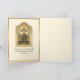 Fira jubileet för prästvigningen med denna vackra traditionella katolska vintagebild av ett gyllene krucifix med skriftställe på framsidan och prästen som frambar den Heliga Messen på altaret inuti. En skriftvers finns på insidan samt en hälsning. All text och teckensnitt kan ändras.