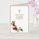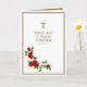 Fira prästedenens årsdag med denna vackra traditionella katolska bild på ett gyllene krucifix med röda rosor och bibelvers. På kortets vänstra sida finns dikten av Jean-Baptiste Henri Lacordaire, O.P. (1802-1861)