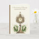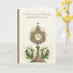 Med en vacker kort för en katolsk präst som firar 50-årsjubileum för sin prästvigning med en gyllene monstrans och eukaristi prydd med vita kallaliljor. All text och typsnitt kan ändras.