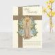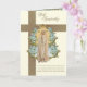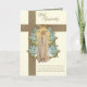 Med en vacker specialdesignad begravningssympati-kort med en bild av den saliga jungfru Maria, Vår Fru av Fatima överlagd på ett gyllene kors. Inuti finns samma bild med en bibelvers och blå blomsterkant.