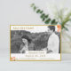 Utformningen har det foto som du anger som huvuddesign. Rubriken visas överst till lämnad i ett guld-färgad-teckensnitt mot en vit rektangulär bakgrund som ramats in i ett tunt, gyllene gräns. Namn av Bride och Groom visas i samma guld-text även mot en vit baksida. Ro av persikor och terracotta färg stärker gräns. Under fotot visas bröllop tydligt i stor text. Namn i kyrkan och stads- och stadsplaneringen att bröllop ska ta ställe visas nedan efter det att datumkortet sparats. En elegant, guld-färgad gräns ramar hela designen. Designad för samordning med "Terracotta Ro katolska Bröllop Suite".