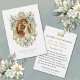 Med en vacker traditionell katolsk bild av Maria och Josefs förlovning med Jesu, Marias och Josefs hjärtan i guld på baksidan. En bön för bruden och brudgummen finns också på baksidan. All text och teckensnitt kan ändras.