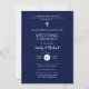 Elegant och modern katolsk bröllopsinbjudan med denna vers "Var helt ödmjuka och milda;