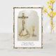 När du välkomnar någon till den katolska tron, kommer denna traditionella katolska framställning av Kristus på korset, Den Helige Ande och Nattvarden säkert att ge glädje på detta speciella tillfälle. Vackra persikoblads- och eukalyptusblommor omger bilden.