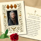 Detta elegant katolska minneskort för heliga är försett med ett vintage-inspirerat elfenben och guld ram med de tre hjärnorna Jesus, Mary och Joseph i traditionell symbolisk form. Framsidan innehåller ett centrerat personligt foto, medan omvänt bär en hjärtlig bön för själens eviga vila. En tidlös keepé för begravningar, minnesmassor eller Alla själsdagar, lovande designad för de trogna som avgått.
