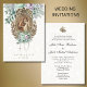 Denna traditionella katolska bröllopsinbjudan har en vacker bild av den saliga jungfru Maria och S:t Josef när de vigs. Detta är på en vit vintage spetsbakgrund med accentuerande mintgröna och lavendelblommor. All text och typsnitt kan ändras. Vår samling har också koordinerande bröllopsartiklar med denna design.